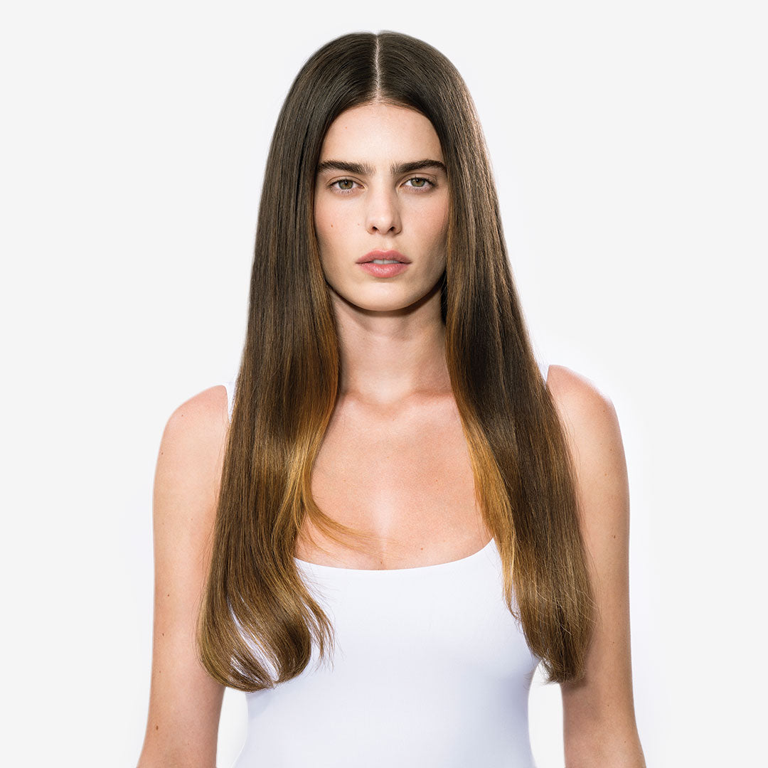 Using a 180°C straightening iron, take narrow sections of hair until all strands are straight. Enjoy silk-like hair for the next three months.